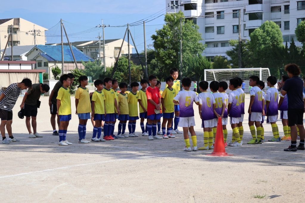 HOME > NEWS > NEWS PICK UP 試合結果 2024/8/24(土) 茨木5年生3部リーグ 投稿日:2024年8月26日 5年生10名、4年生3名にて茨木5年生3部リーグをしました。 連休明けで心配でしたがパスを繋いでからの展開も出来ていたと思います。前に前に急いでしまう事で相手ボールになる事も多かったので、周りをもっと見ることが出来ればもっと簡単に繋げると思います。 残るリーグ戦も頑張っていきましょう。 以下結果です。 vs 東奈良FC 6-0以後TM -NEWS, PICK UP, 試合結果