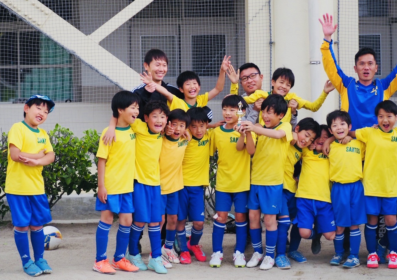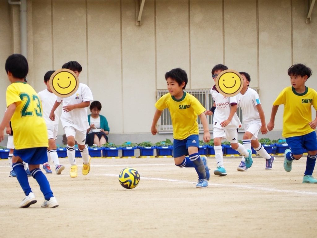テーマである①仲間をみて判断する。②寄せのスピード。③自分の背後をみる(スペース、敵・仲間を見る)。を全員で意識して取り組めていました。敵に囲まれた時にフリーな選手にパスを出したり、素早いアプローチからボールを奪ってからのドリブル、シュートの意識がしっかりできていました!